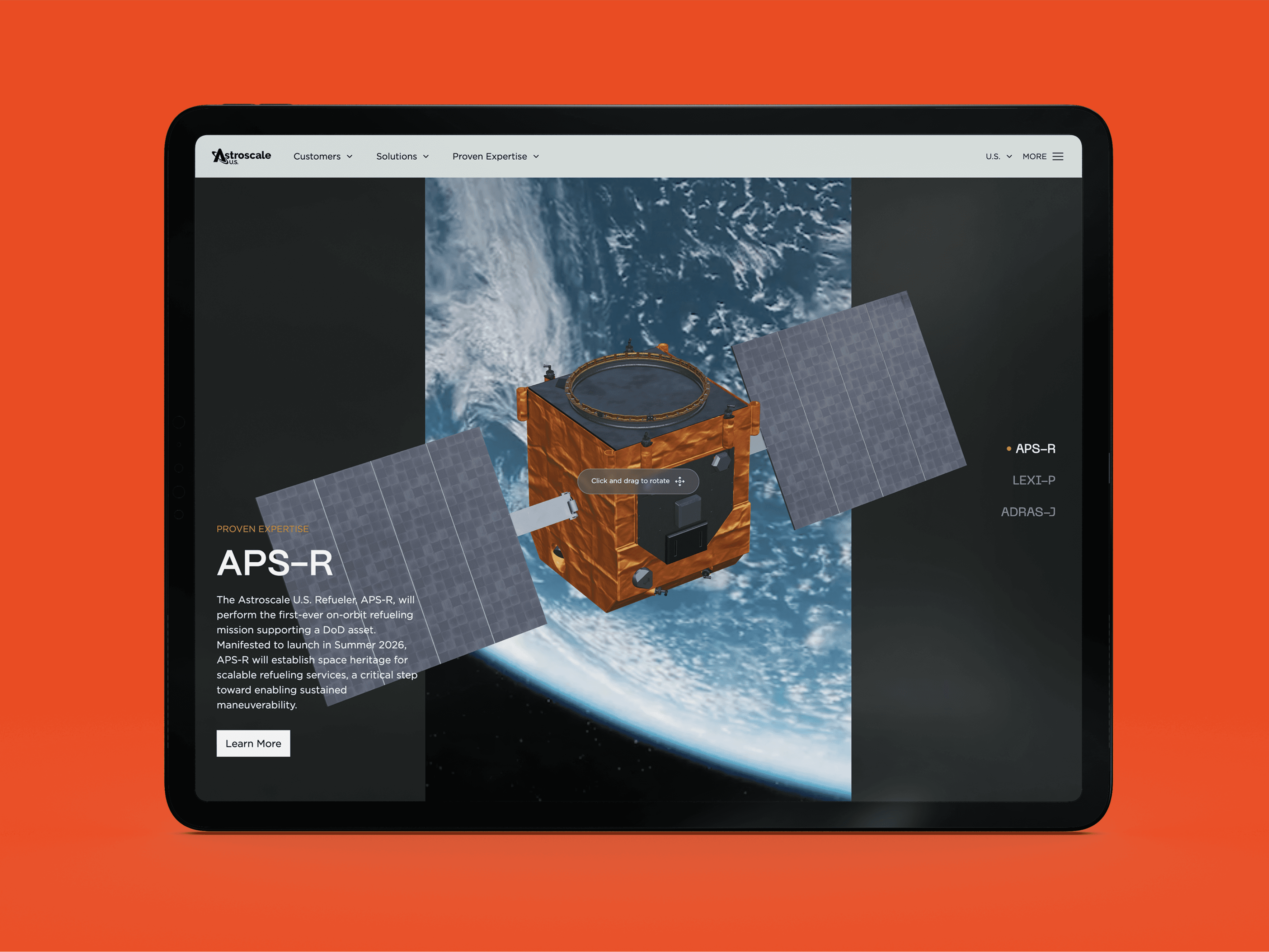 We designed interactive 3D product experiences that let audiences explore Astroscale’s advanced spacecraft up close, turning abstract engineering into tangible understanding. This hands-on digital layer transformed how customers, partners, and investors engage with their innovation.
