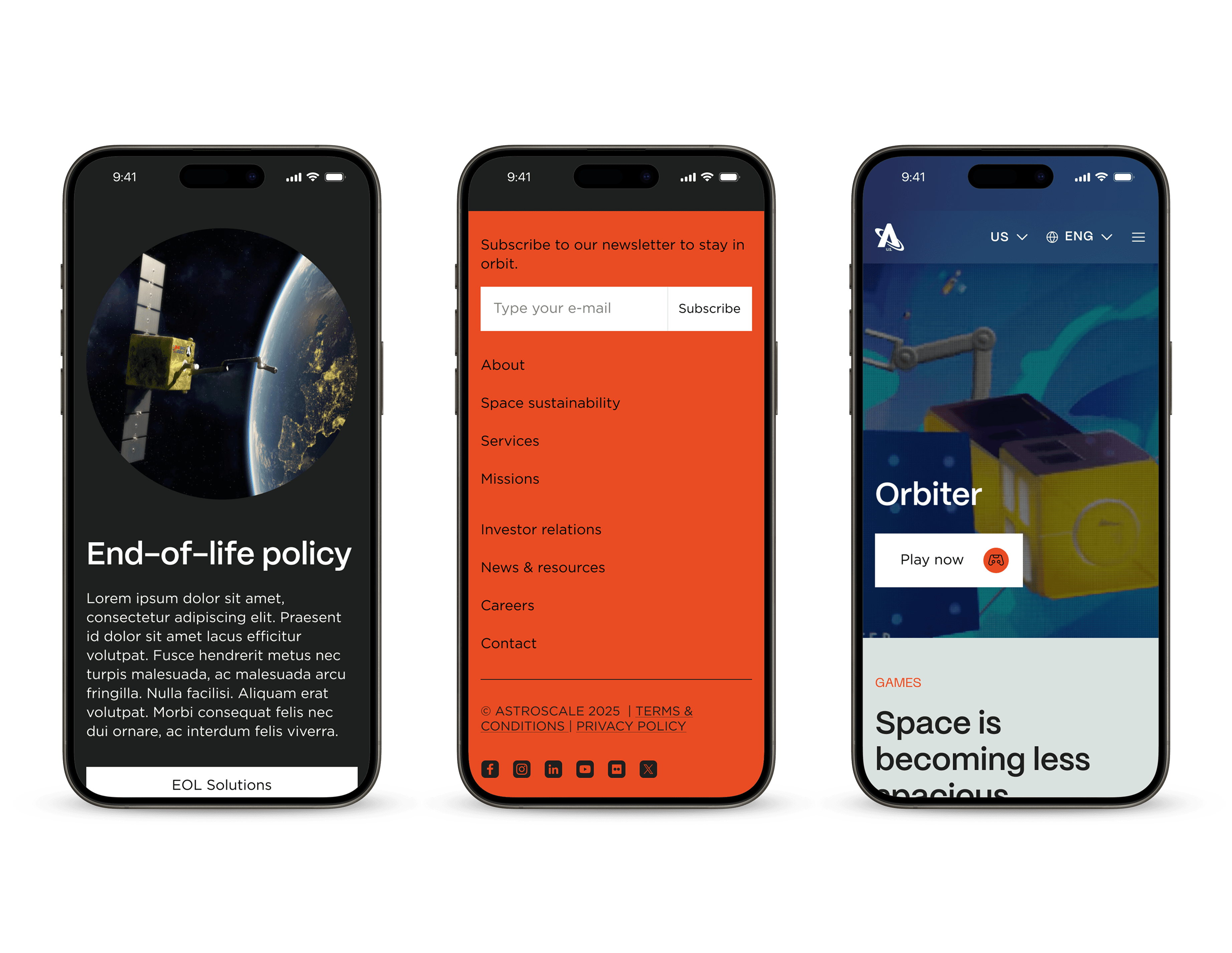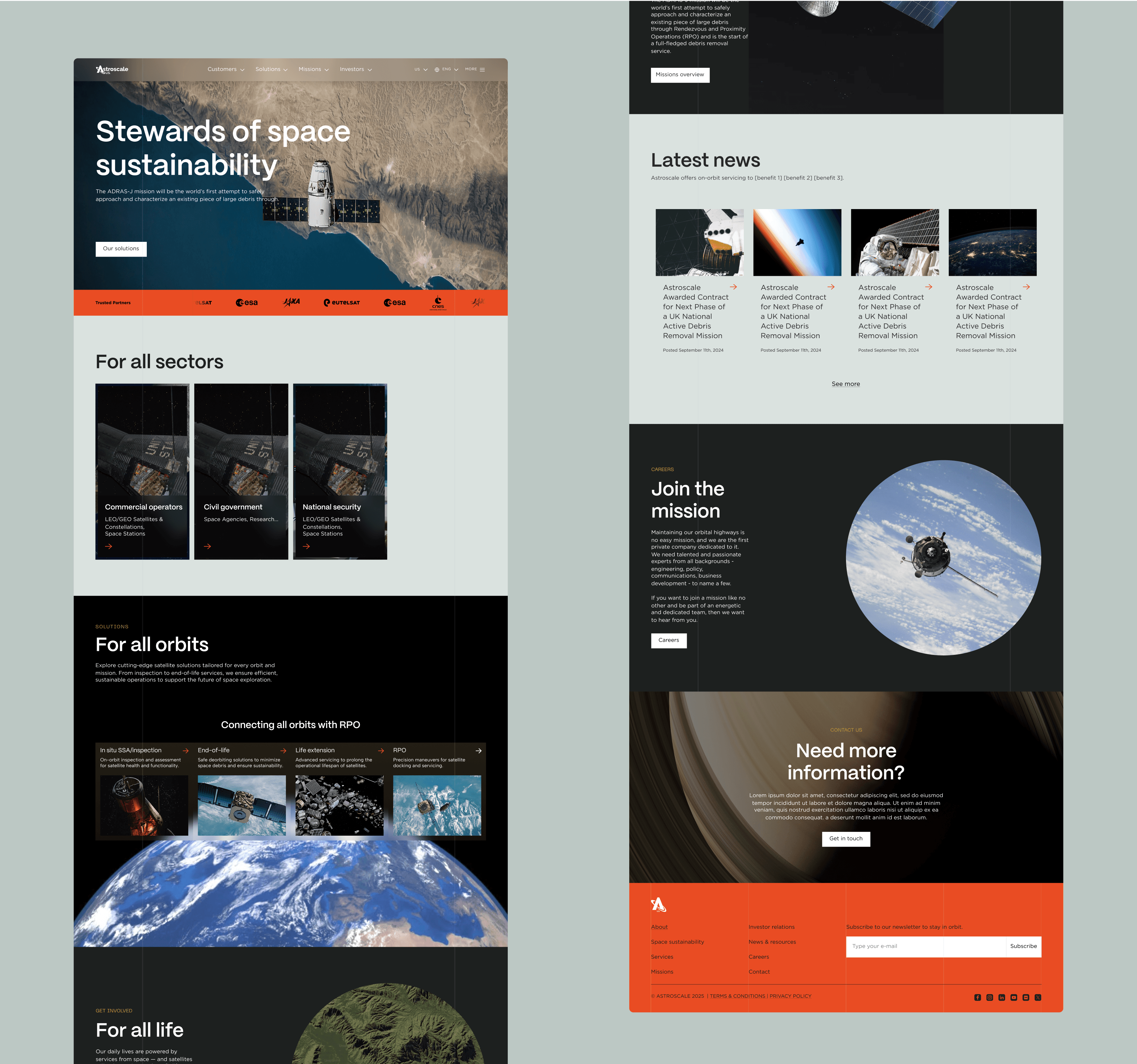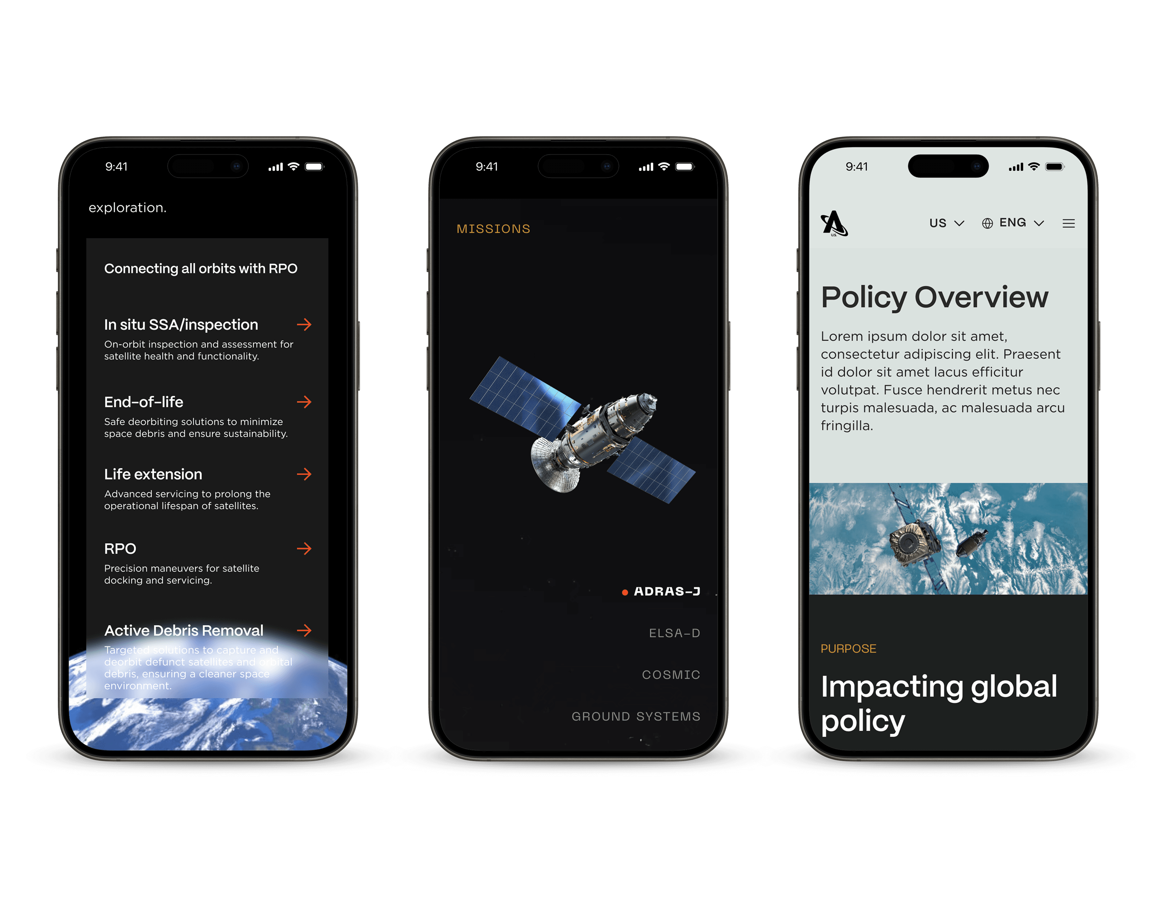 We collaborated with Astroscale’s global and US teams to untangle their expansive service ecosystem , defining a clear structure that resonated with their varied audience segments. The result: a cohesive system that bridges technology, mission, and market purpose.